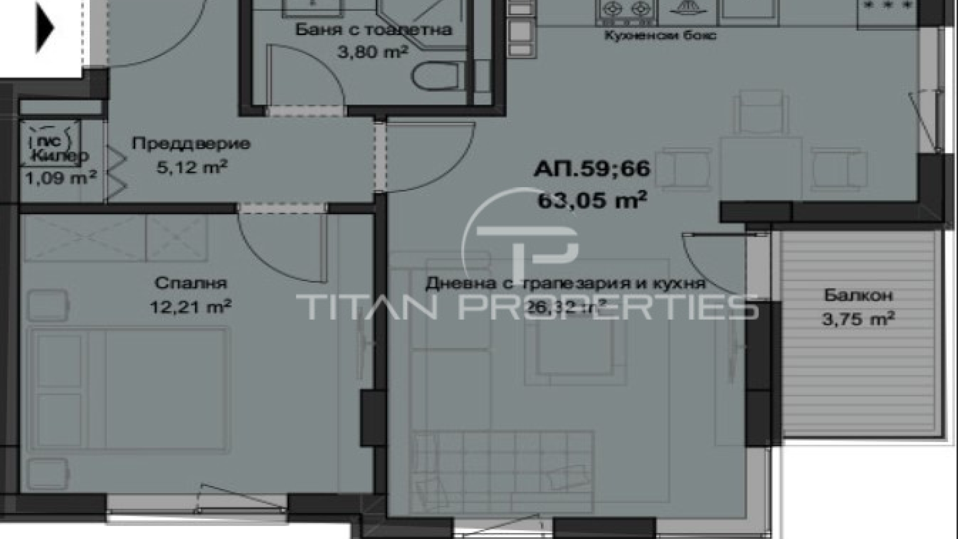 Титан Пропъртис има удоволствието да Ви представи двустаен апартамент в кв.Кючук Париж.