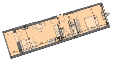 Available 64 m2 € 135000 BGN 264037.05Апартамент А25 е ситуиран на 6-ти жилищен етаж и разполага със застроена площ от 54,85 кв.м., разгърната по следния практичен начин: антре, дневна с трапезария и кухненски бокс, спалня, баня с тоалетна, тераса. Изложение: север/юг.