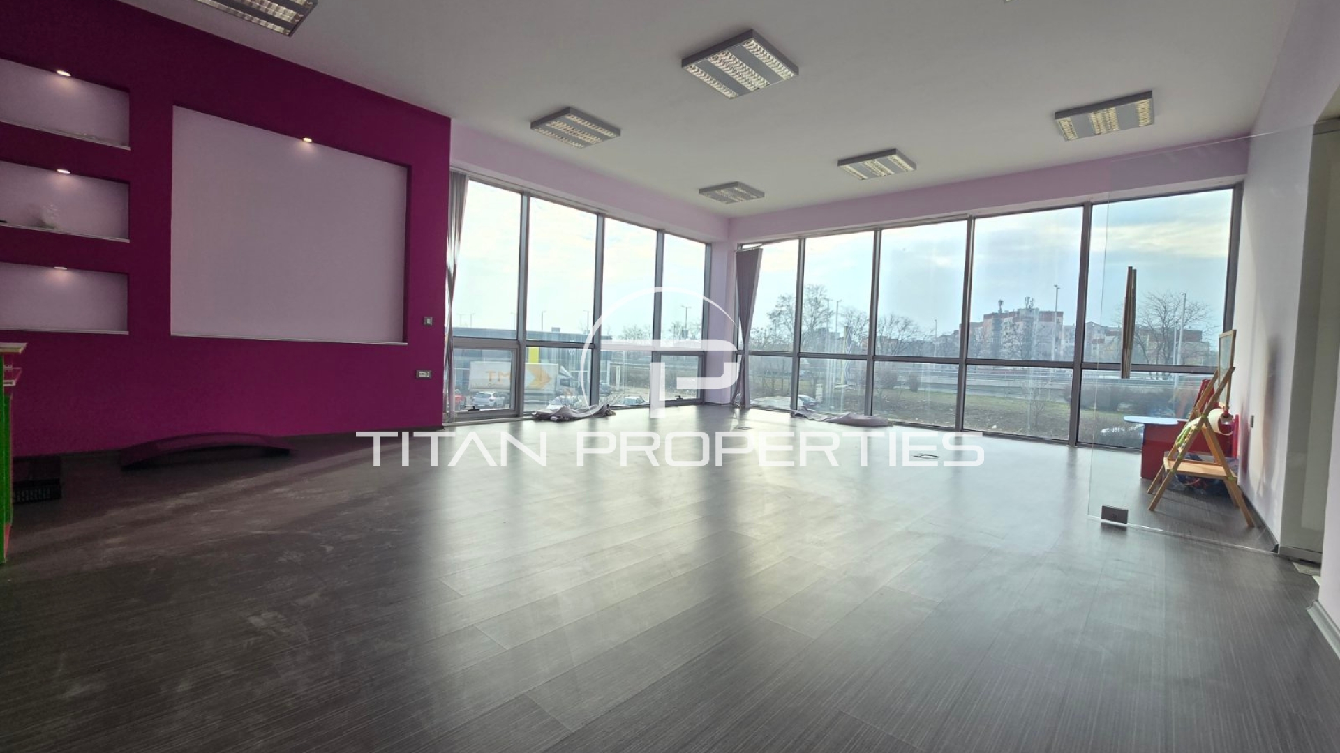 Титан Пропъртис отдава под наем модерен офис, който съчетава стил, функционалност и удобство. С площ от 100кв.м. той предоставя интелигентно разпределение на пространството – подходящ както за малък, така и за разрастващ се екип.