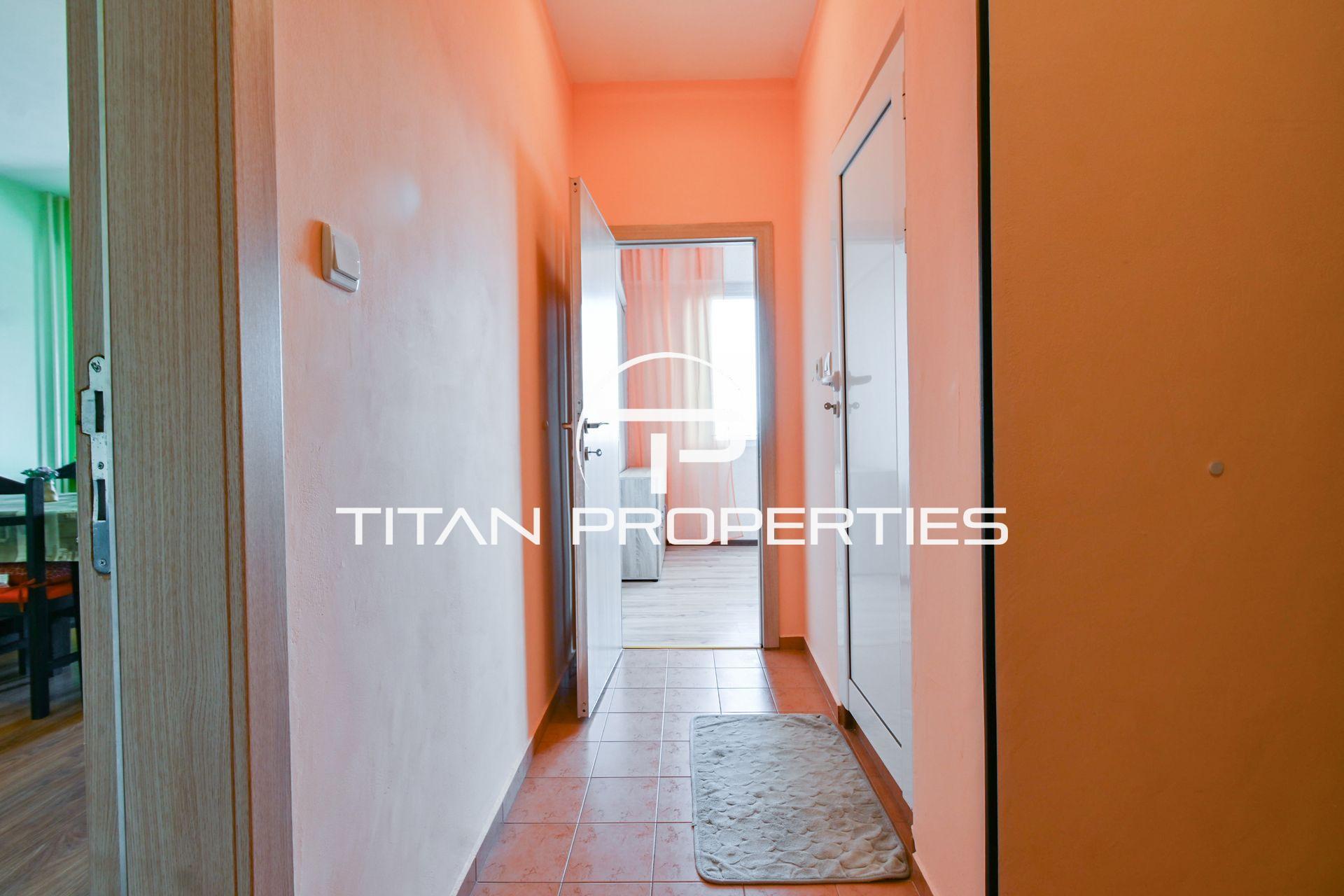Разпределението включва хол с кухненски бокс, спалня и баня с тоалетна. Апартаментът е обзаведен и се отоплява на ТЕЦ. Месечният наем е 550 EUR. Отличен избор за комфортен и функционален начин на живот.